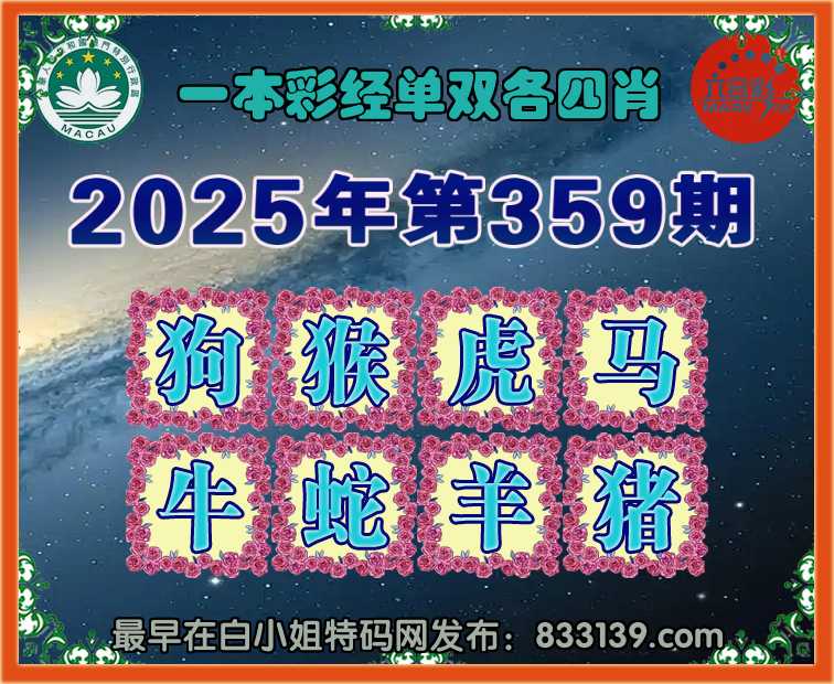 359期: 『一本彩经』 单双各四肖开:00准