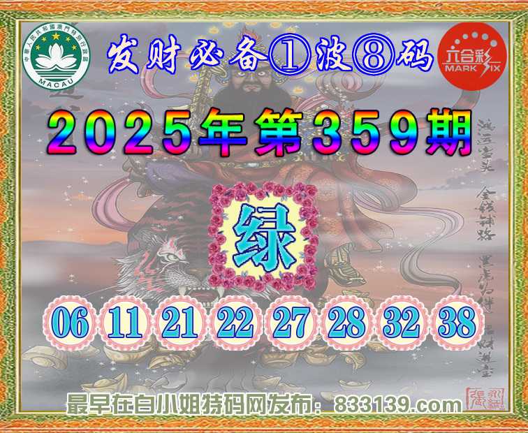 359期:【发财必备】 ①波⑧码【绿波】开:00准