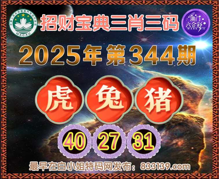 344期:【招财宝典】 三肖三码【虎猪】【40.27.31】开:兔27