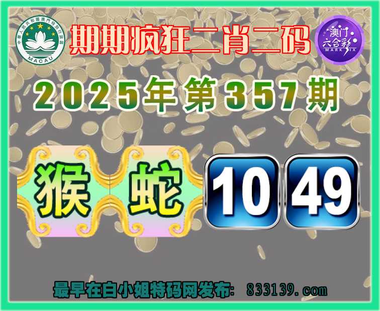 357期:《期期疯狂》 二肖二码【猴】【10.49】开:蛇49