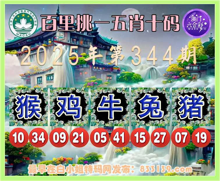 344期:『百里挑一』 五肖十码【猴鸡牛猪】开:兔27