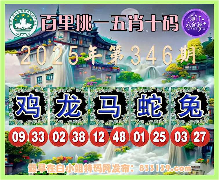 346期:『百里挑一』 五肖十码【鸡龙马蛇】开:兔03