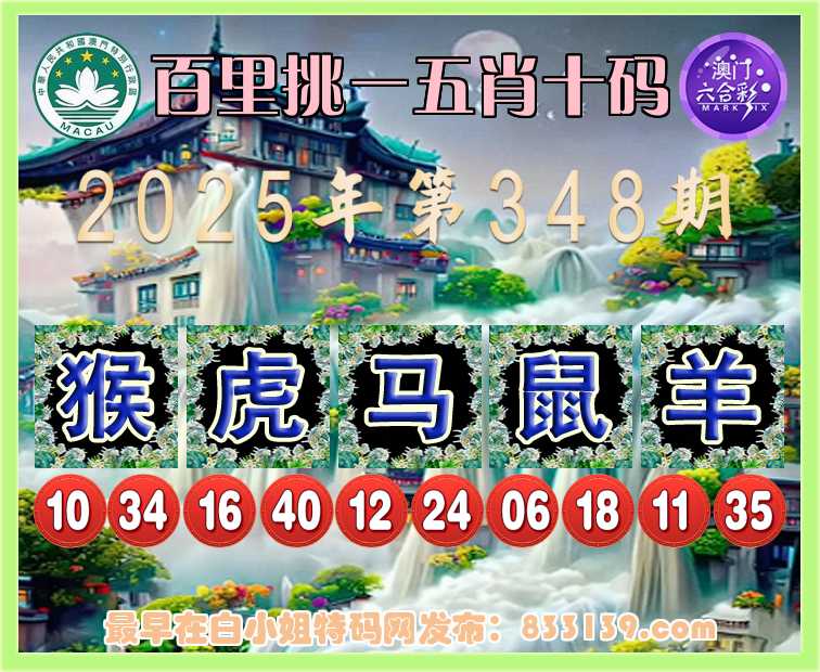 348期:『百里挑一』 五肖十码【猴马鼠羊】开:虎16
