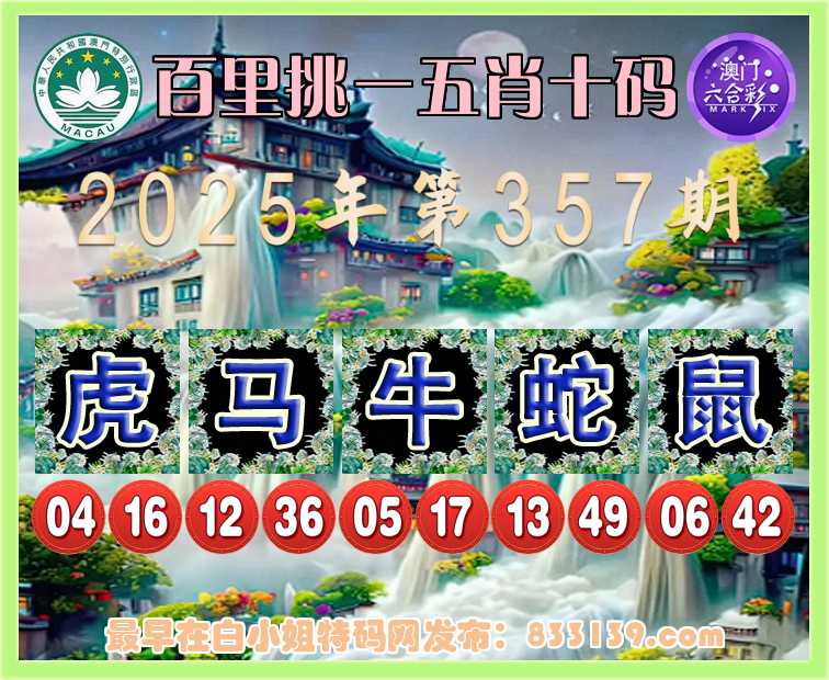 357期:『百里挑一』 五肖十码【虎马牛鼠】开:蛇49