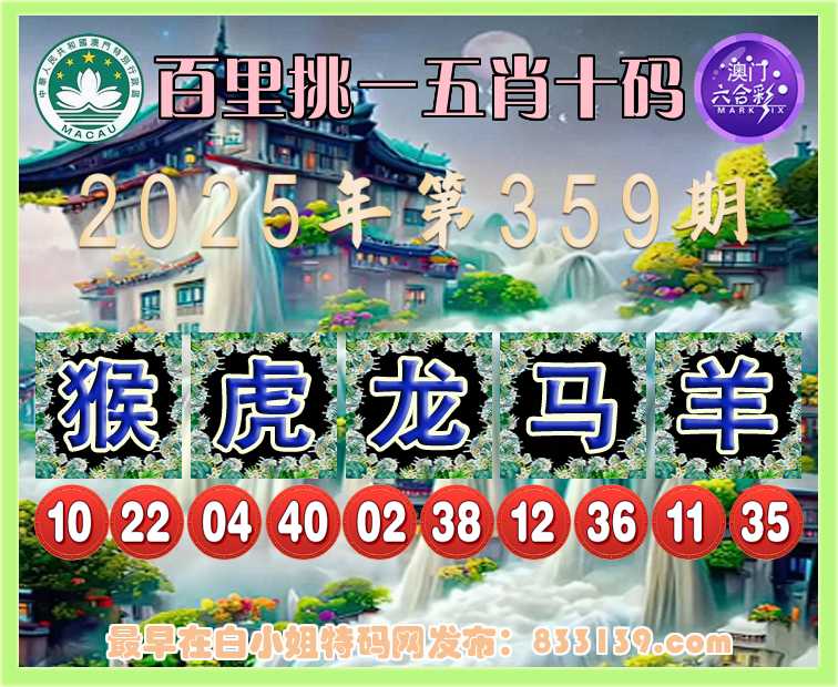 359期:『百里挑一』 五肖十码【猴虎龙马羊】开:00准
