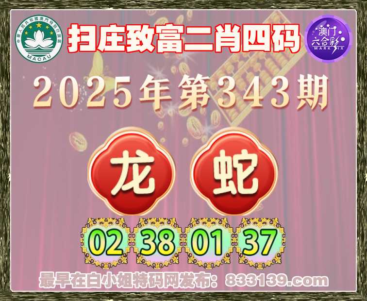 343期:『扫庄致富』 二肖四码蛇】【02.38.01.37】开:龙38