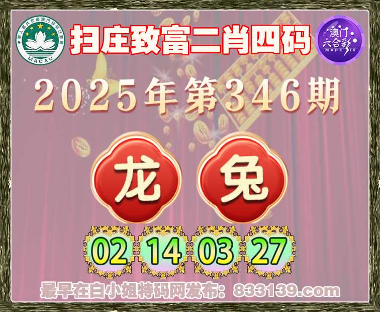 346期:『扫庄致富』 二肖四码【龙】【02.14.03.27】开:兔03