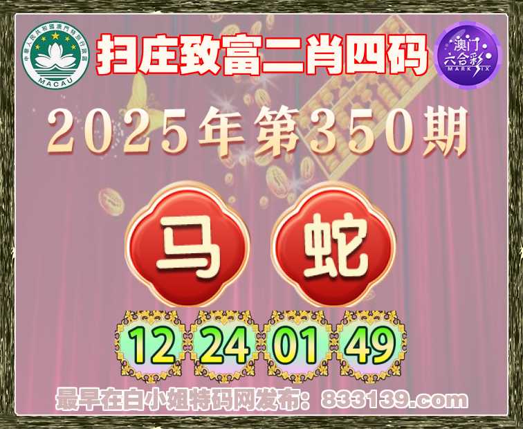 350期:『扫庄致富』 二肖四码【马】【12.24.01.49】开:蛇49