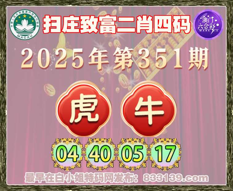 351期:『扫庄致富』 二肖四码牛】【04.40.05.17】开:虎04