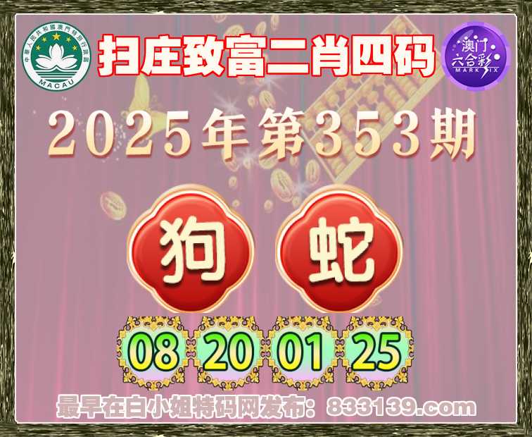 353期:『扫庄致富』 二肖四码【狗】【08.20.01.25】开:蛇01