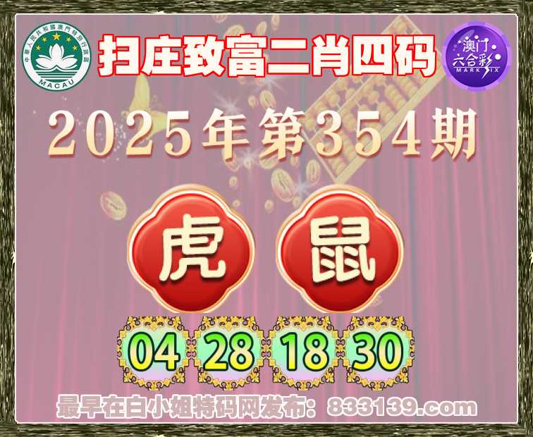 354期:『扫庄致富』 二肖四码【虎】【04.28.18.30】开:鼠30