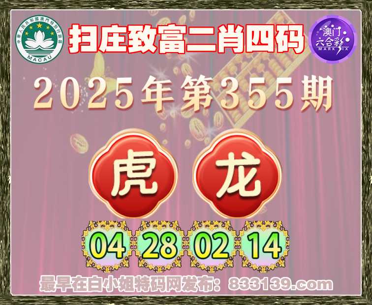 355期:『扫庄致富』 二肖四码【虎龙】【04.28.02.14】开:狗08