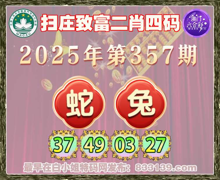 357期:『扫庄致富』 二肖四码兔】【37.49.03.27】开:蛇49