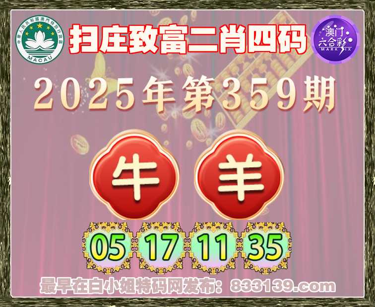 359期:『扫庄致富』 二肖四码【牛羊】【05.17.11.35】开:00准